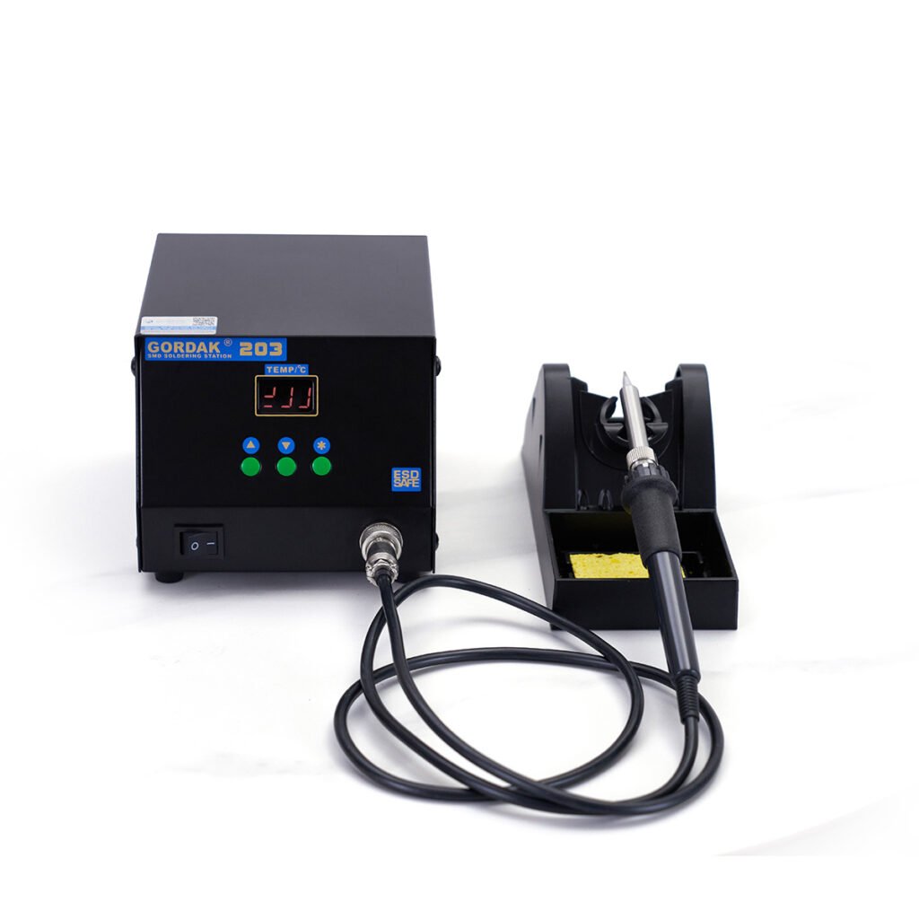 The GORDAK 203 Commercial Soldering Station is an advanced, ESD-safe soldering solution designed for professional electronics production, repair, and precision assembly. Equipped with a microcomputer closed-loop PID intelligent temperature control system and an efficient electromagnetic eddy-current heating technology, it delivers rapid heating, fast thermal recovery, and highly stable temperature performance.